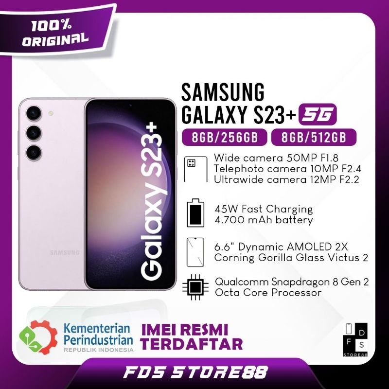 Samsung S23+ S23 Plus 5G 8/128 GB 8/256 GB 8/512 GB Garansi Resmi SEINSamsung S23+ S23 Plus 5G 8/128 GB 8/256 GB 8/512 GB Garansi Resmi SEIN