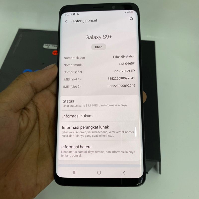 •Brand = samsung s9 plus 6/64gb resmi indonesia •duall sin on •Kondisi second = fisik lumayan mulus terbilang like new •Minus = lcd mulus tidak ada shadow •selebihnya on smua •Kelengkapan = unit box casan ori bawaan