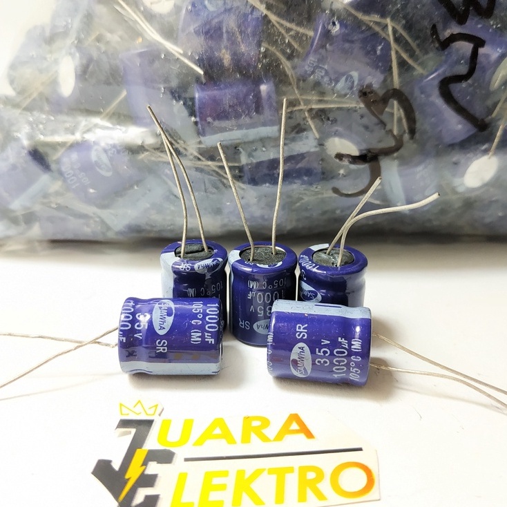 SAMWHA KAPASITOR ELCO 1000uF / 35V (1 Pcs) | Capasitor Elko 1000 uF/35 Volt Kapasitor Elco Menjadi Komponen elektronika yang sangat penting. Berfungsi sebagai : - Filter / Penyaring biasa digunakan pada sistem Radio, TV, Amplifier, dll - Sebagai Kopling/ Penghubung Amplifier tingkat rendah ke tingkat yang lebih tinggi Cara Kerjanya dalam suatu rangkaian elektronika dengan cara mengalirkan elektron menuju kapasitor. Saat Kapasitor dipenuhi dengan elektron, tegangan akan mengalami perubahan. Elektron tadi yang berada di dalam kapasitor, akan keluar dan mengalir menuju rangkaian atau komponen yang membutuhkannya (Radio, TV, Amplifier = Sebagai Filter. Pada Lampu Neon = Sebagai Penghemat daya Listrik. Pada Rangkaian Antena = Sebagai Pembangkit Frekuensi)