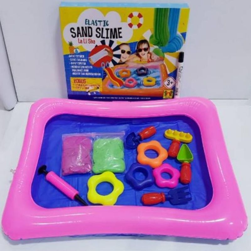 Mainan anak pasir ajaib elastic sand slime plus nampan tatakan edukasi.