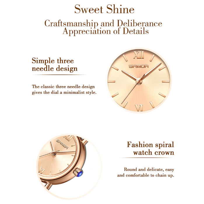 Brand : SANDA Model : 1118L Features : Hours, Minute, Second Date : No Date Case Diameter : 2,6cm Case Thickness : 0,8cm Band Width : 1,0cm Band Length : 19,5cm Case Shape : Round Case Material : Kirsite Display : Analog Movement : Japan Quartz Power Source : Battery Battery Power : Japan Maxell Dial Window : Mineral Glass Band Material : PU Buckle Type : Pin Buckle Water Resistance: 3ATM