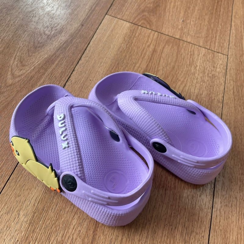 - Merek : DULUX - Model : 510E - Sandal Jepit Tali Belakang - Size : 20-25 - Warna : Pink, Ungu, Tosca, Merah, Kuning - Bahan : Karet, Elastis, Kuat, Tidak Licin, dan Empuk