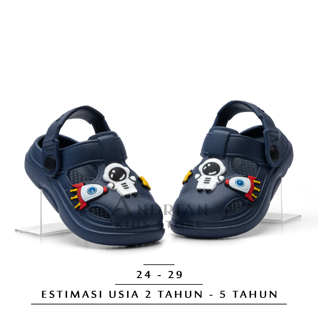 Detail Sandal Anak Laki-laki Model Selop Tali Belakang berkarakter Astronot 2-5 Tahun