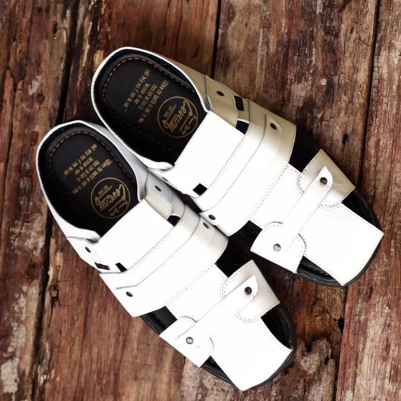 Detail Sandal Bustong Tutong Pria Slip On Slop Kulit Sapi Asli Putih Casual Santai Jalan Formal Keren Trendy Original