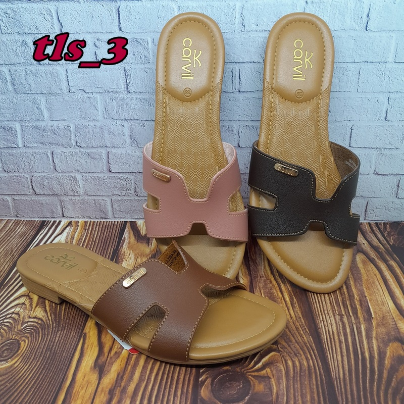 SANDAL CARVIL WANITA ORIGINAL - Carvil memiliki berbagai sandal casual dengan design trendy serta nyaman dipakai - Sangat cocok untuk kegiatan sehari-hari maupun acara resmi - Memiliki kualitas dengan bahan upper dari tekstil, outsol karet TPR yang baik serta ringan ketika dipakai - Sandal detail two strap - Packing dus box