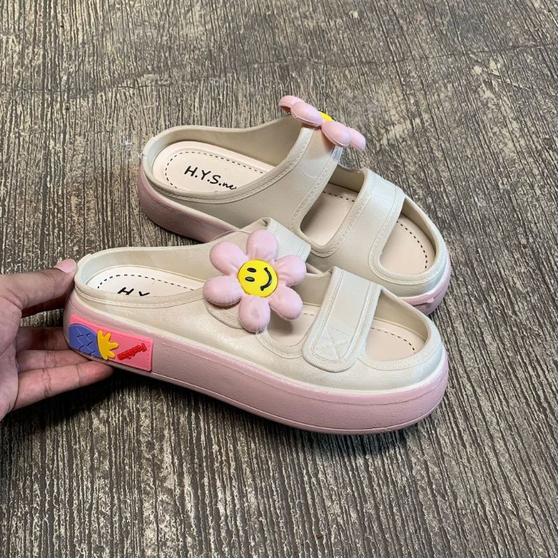 Detail Sandal Couple selop widges Double starp import jelly sintetis motif bunga matahari