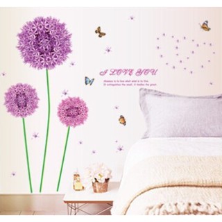 RELIZA WALLSTICKER DANDELION UNGU BUNGA FLOWERS LOVE BUTTERFLY PURPLE HOME DECOR HIASAN DINDING 9127