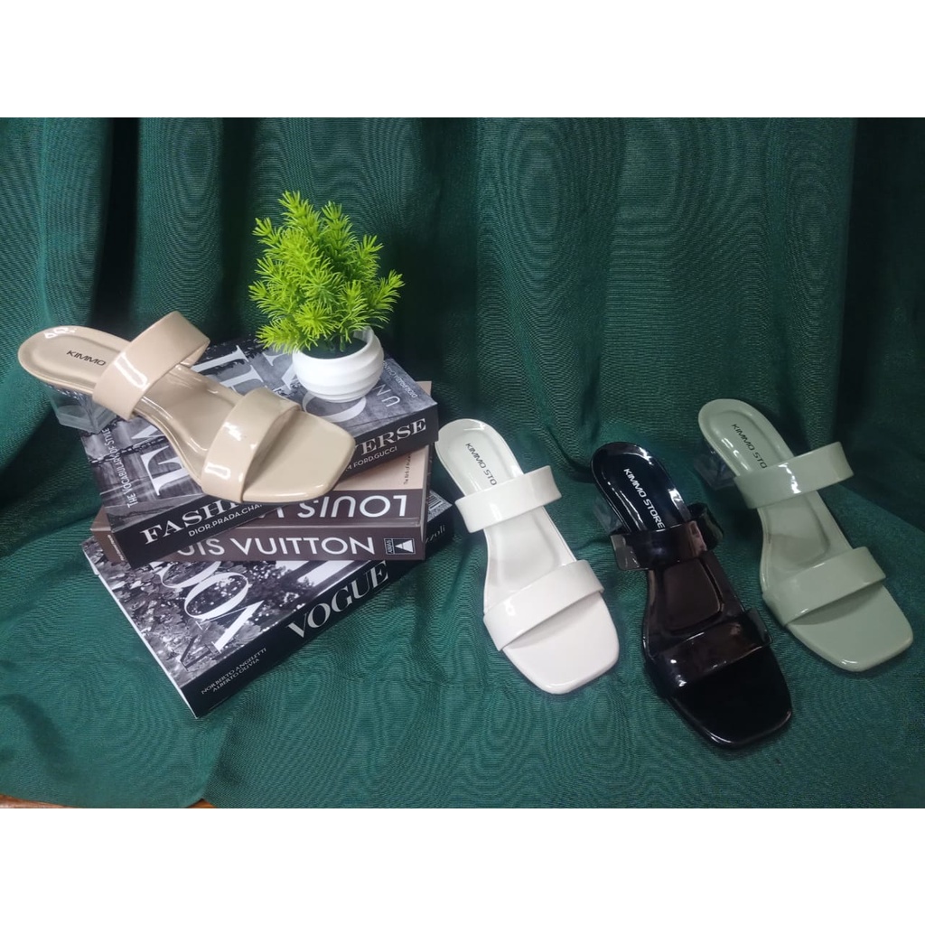 sandal hak kaca wanita ban 2 warna cream-hitam-mint-mocca size 36-21 cm 37-22 cm 38-23 cm 39-24 cm 40-25 cm material sol javarino non slip karet tinggi hak 5 cm pengikat hak dari baut dan mur jd tdk mudah patah foto real