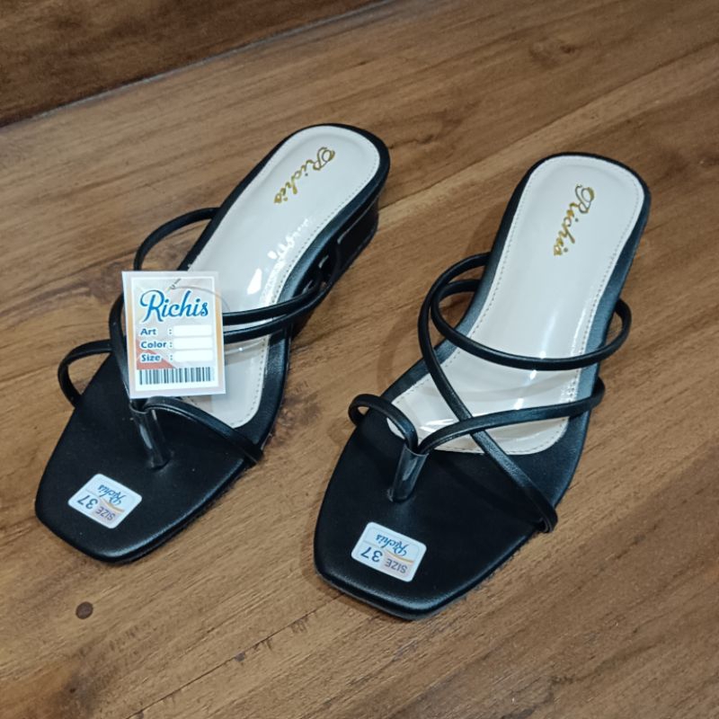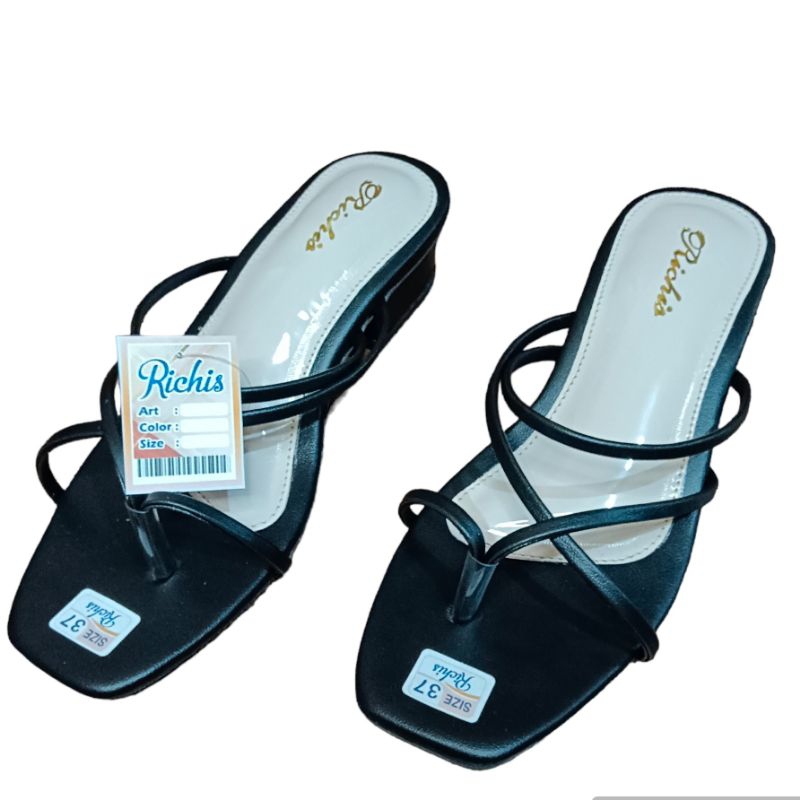 Detail Sandal heels 3cm hak tahu Richis Sandal tali Sandal wanita Sandal teplek Sandal import