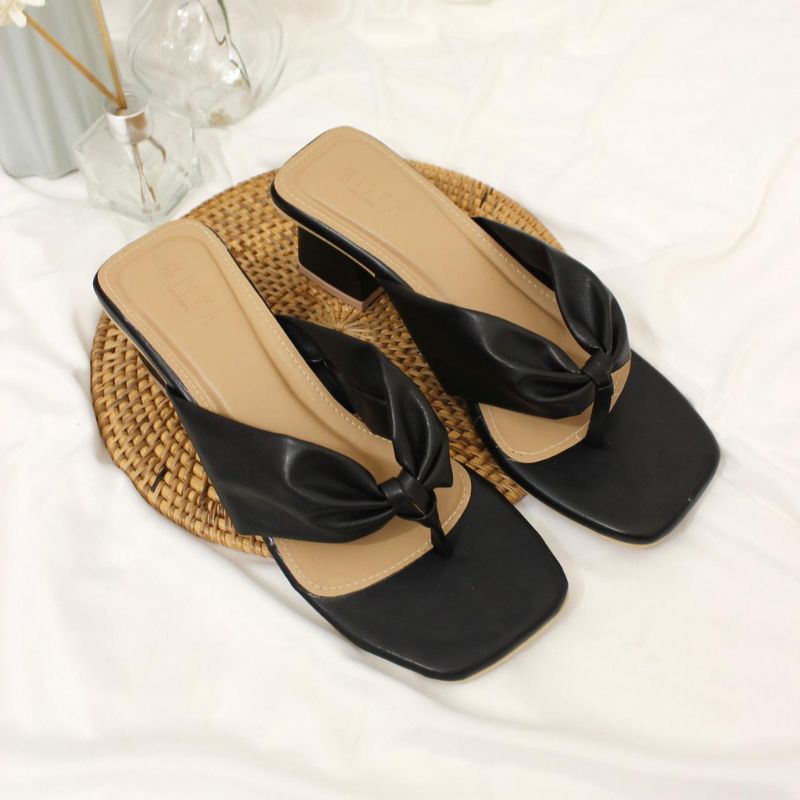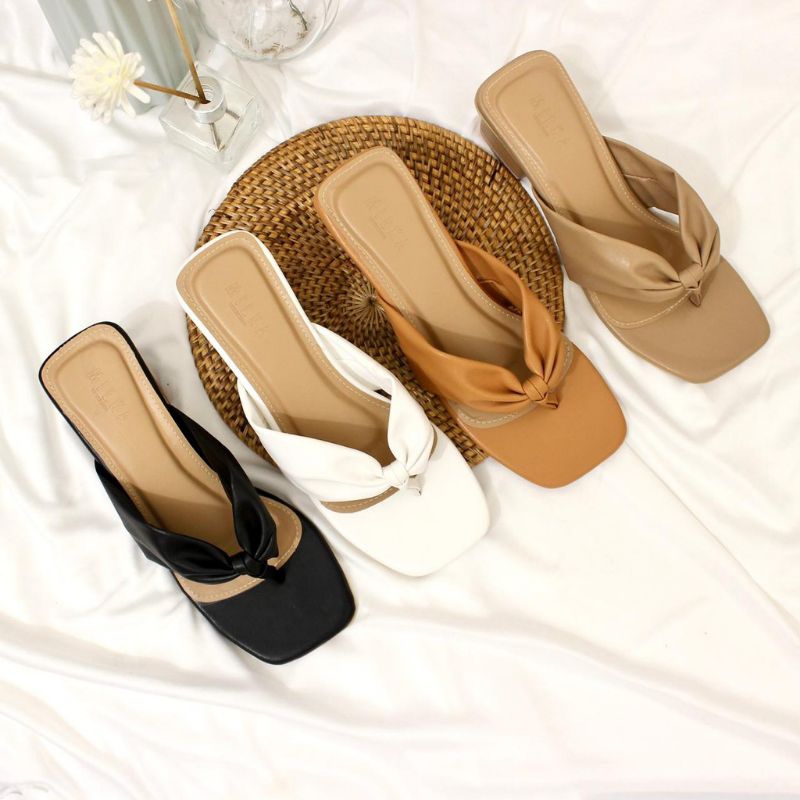 Sandal heels 5cm yang terinspirasi dari koleksi sendal Adele. Sendal jepit ini memiliki upper yang manis dan nyaman untuk digunakan karena bahannya yang lentur dan lembut sehingga sangat nyaman digunakan untuk sehari-hari. Adielin di design cocok untuk sisturs yang WFO hingga jalan-jalan ke mall! Terdapat 4 varian warna: Mocca,Tan,Putih,Hitam