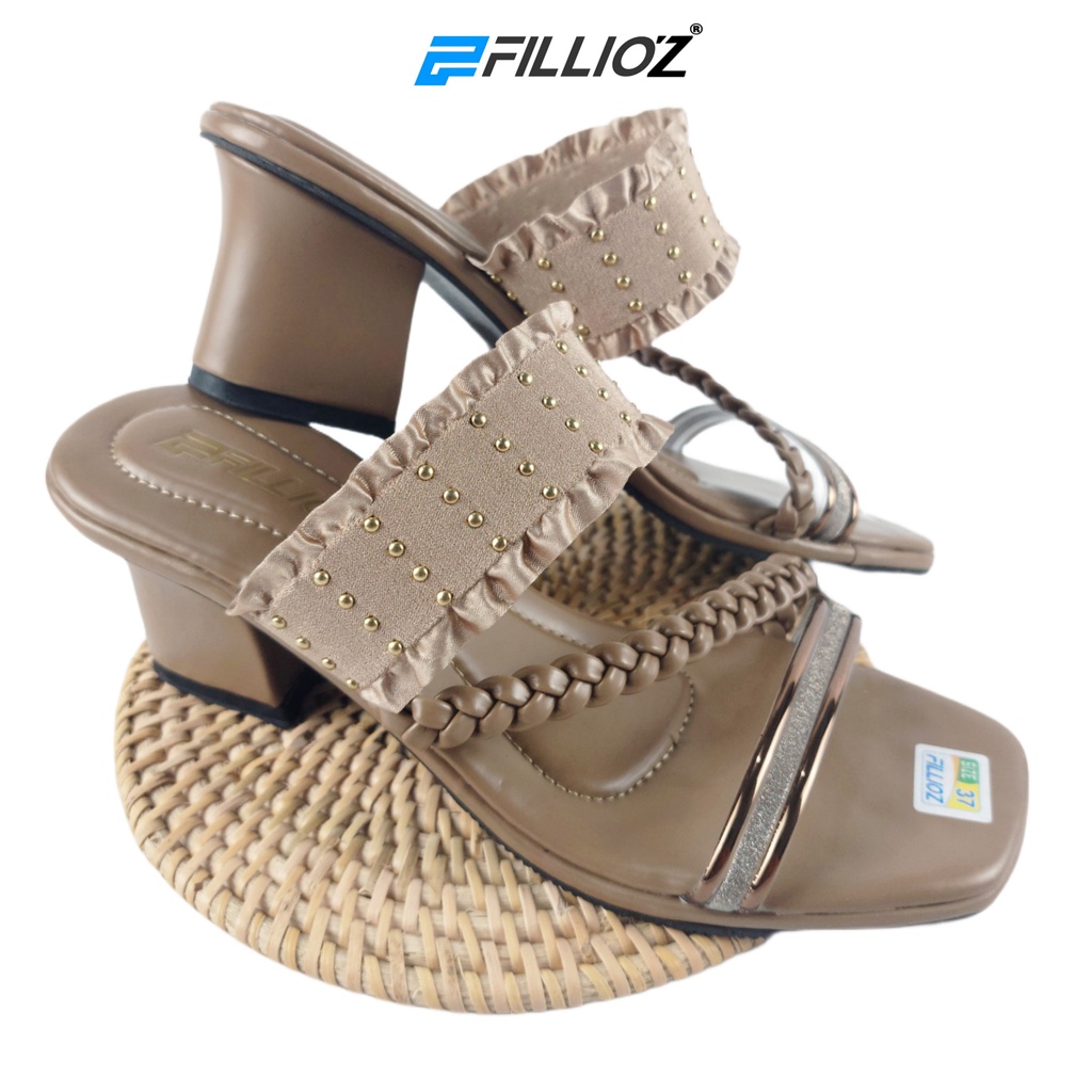 Detail Sandal Heels Wanita Hak 5cm Chunky Bling Party Elastis Fillioz 210 KPS