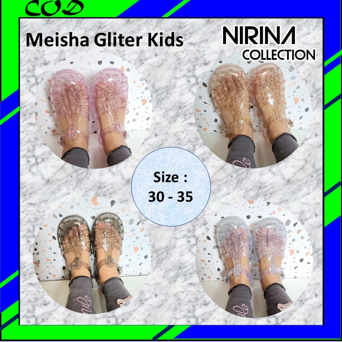 Detail Sandal Jelly Shoes Anak Import ( 30-35) Gliter Kids Transparant Karet Anti Slip /Sepatu sendal Anak Perempuan Slipper Mom and Kids