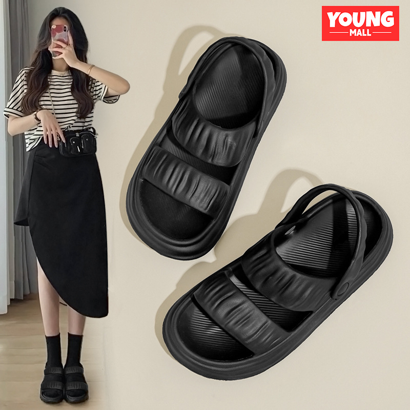 Sepatu Wanita > Sandal > Sandal Rumah > Sandal jelly wanita import korea terbaru 2023 Sendal selop wanita kekinian Sepatu Sandal tali wanita empuk EVA flat sandals bawah tebal yang dapat dipakai