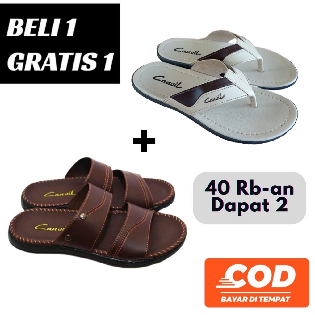 SANDAL KULIT PRIA TERLARIS BELI 1 GRATIS 1