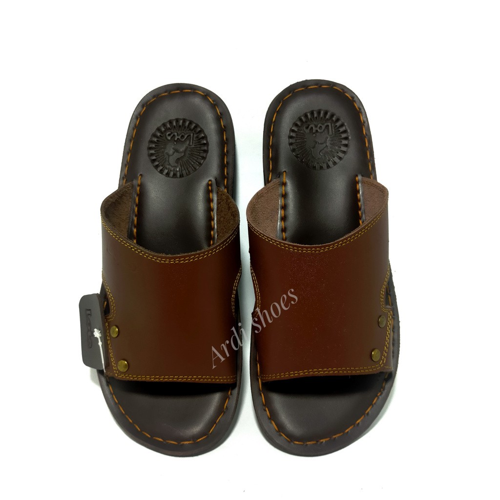 Detail Sandal Kulit Pria Sendal Cowok Slop Jepit Casual Sandal Santai Laki Laki Dewasa Warna Coklat