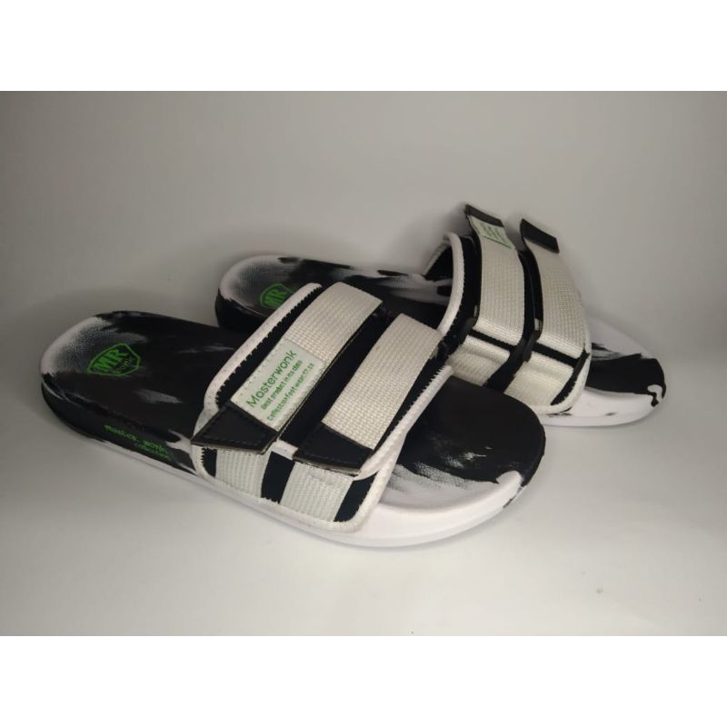 Deskripsi Produk : - Brand :masterwonk - Model Sandal Slide Slip on yang simple. - Bahan Upper/ kain lembut webbing Kuat dan Nyaman di gunakan. - Bahan Insole terbuat dari EVA RUBBER Footbed yang sangat empuk , lentur ,ringan dan menyatu dengan lekuk kaki(tidak licin) sangat aman untuk di area jalan licin dan Ringan.