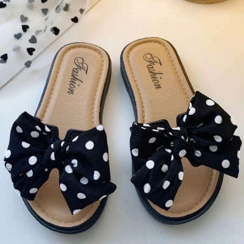 Detail Sandal Selop Anak Perempuan Ribbon Polkadot