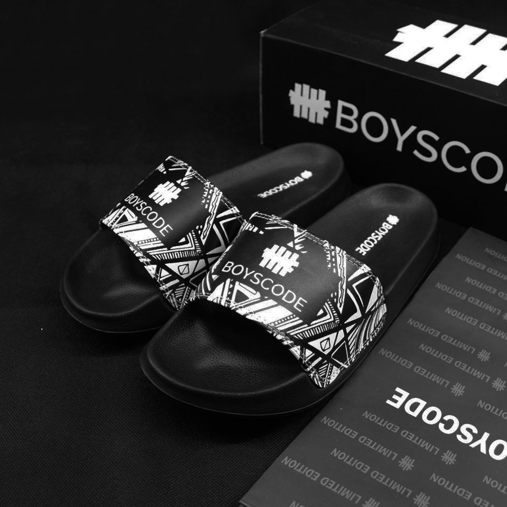 Sandal Selop Distro Pria Wanita Original BOYSCODE Motif Abstrak Hitam Putih / Sandal Slop Pria / Sandal Slide Pria Kode SKU : Sendal Selop Boyscode - Type 21 - Hitam -