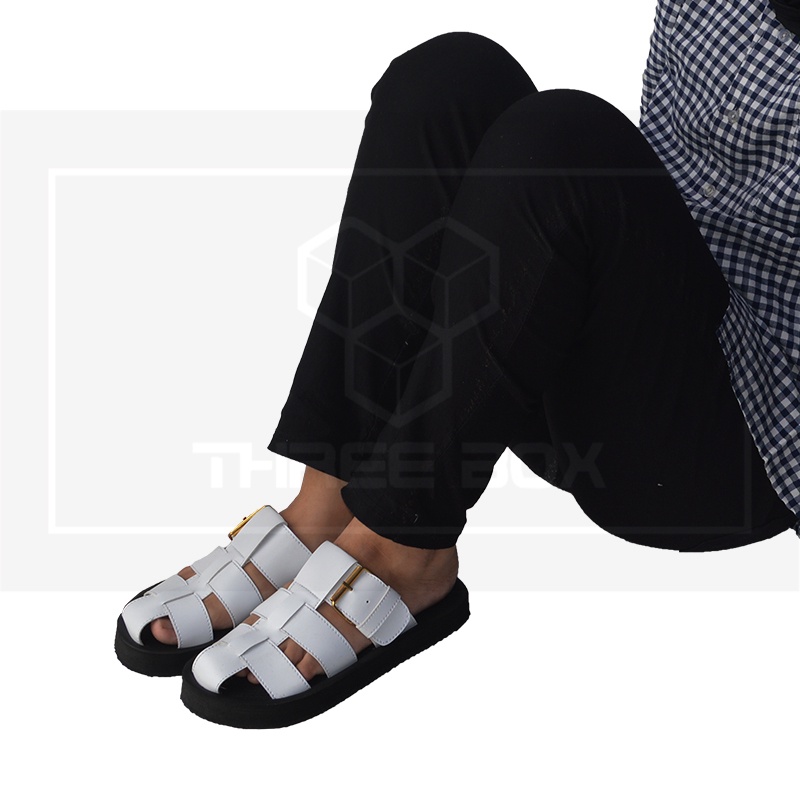 Sepatu Wanita > Sandal > Sandal Flat > Sandal Selop Wanita Empuk Ringan Terbaru / Sendal Platform Slide Korea Wanita Medium Jumbo / Sandal Kasual Big Size Original THREE BOX MOZA