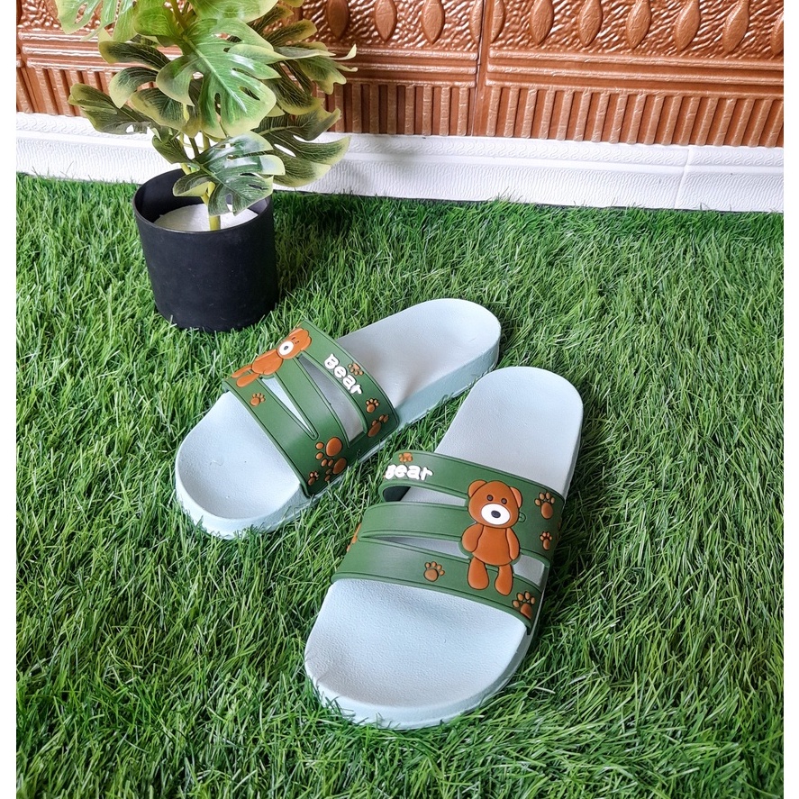Sandal selop wanita / sendal karet wanita motif Bear lucu warna Hijau toscaSandal selop wanita / sendal karet wanita motif Bear lucu warna Hijau tosca