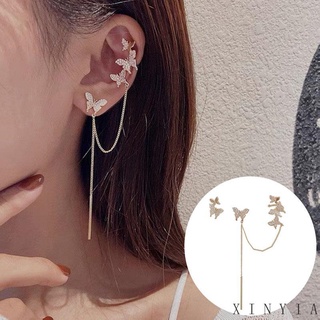 【COD】Korea Anting Fashion Asimetris Rumbai Stud Rumbai Panjang Desain Kupu-Kupu Untuk Musim Panas Warna Silver