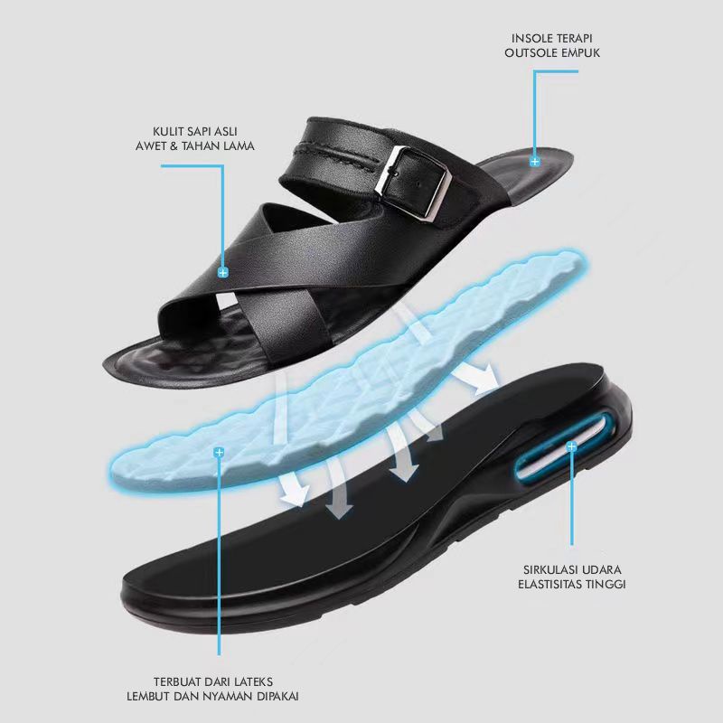 Detail Sandal Sepatu Pria Casual Original Import Sandal Fashion Hangout Kulit Asli High Quality Bagus Casual