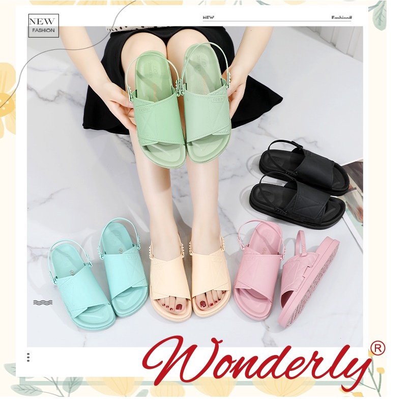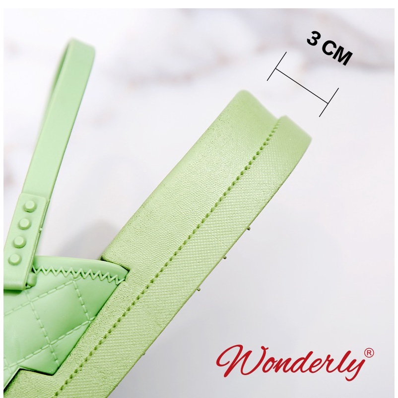 Sendal wanita wonderly dengan desain yang kekinian dan elegan Sendal ini bisa dipakai untuk ke kantor, hangout dll. slop yang elastis dan nyaman untuk di pakai, tali yang kuat terbuat dari PVC yang elastis sehingga nyaman dipakai, sangat lentur dan awet desain sol anti slip Deskripsi Produk : Bahan : PVC U.k : 36-41 Tinggi : 3 cm