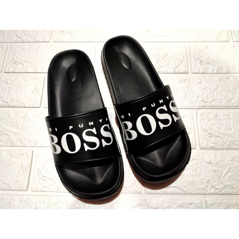 Detail sandal slop pria shevano motif ini punya boss sandal slide