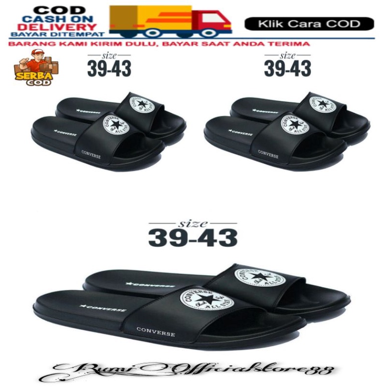 ready stock size 39-43 bahan tali karet dengan sablon logo timbul belakang sandal non sablon sol karet non slip dan nyaman di pakai pengiriman non box pembelian bisa menggunakan bayar di rumah anda (Cod) yang berminat silahkan langsung saja di order kakaa.terima kasih