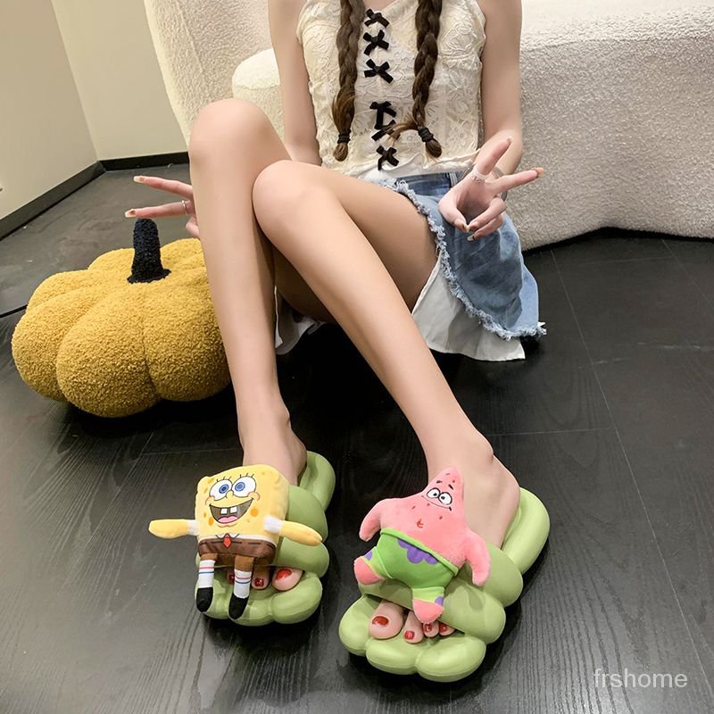 Fashion Bayi & Anak > Sepatu Anak Perempuan > Flip Flop > Sandal wanita SpongeBob SquarePants sandal dasar datar yang lucu sandal bawah yang lembut sandal jep