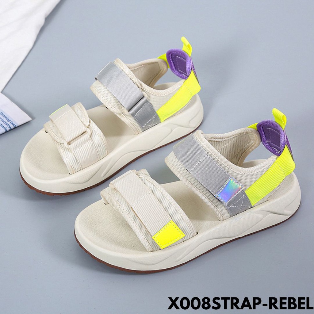 Detail SANDAL WANITA STRAP VARIASI DAILY PERGI PUNCAK CAKEP BAHAN CANVAS COMBI RUBBER IMPORT 008STRAP