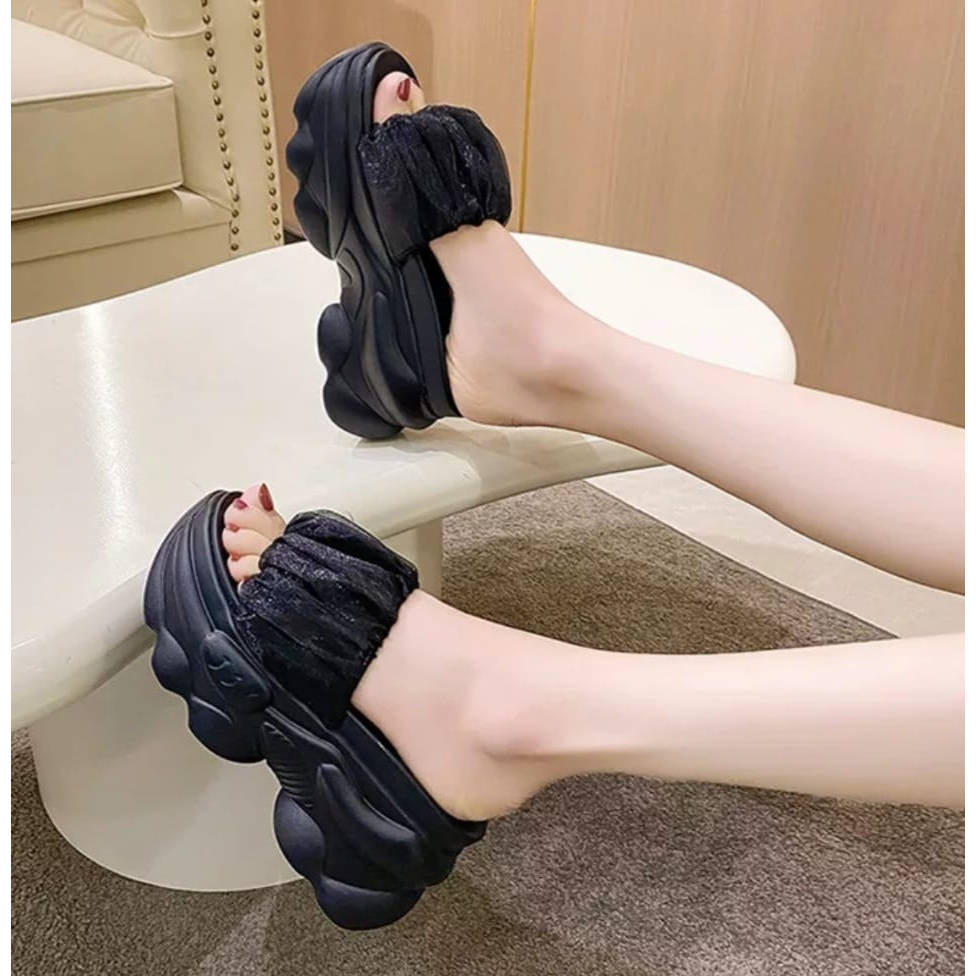 Bahan : Sintetis Sol : PVC Tinggi Sol : 5 Cm Warna : Hitam, Cream, Toska Ukuran : 37 - 40