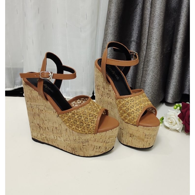 Sepatu Wanita > Wedges > sandal wedges 15cm brukat