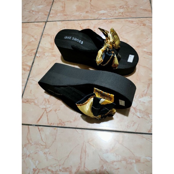 Detail sandal wedges japit bunga spon wanita cantik tinggi 7 cm harga promo!!