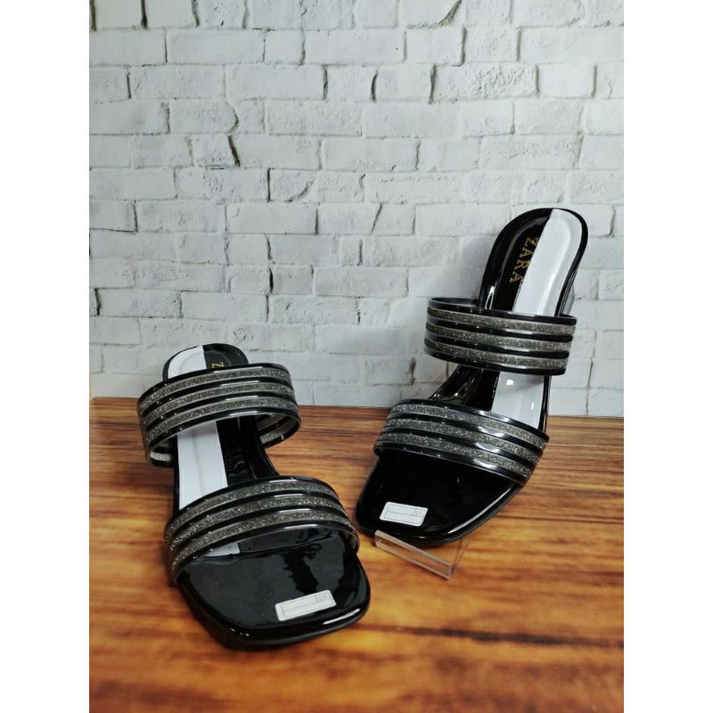 Bahan: sol + hak kaca size : 37- 40 warna : Hitam, Gold, Salem, Abu