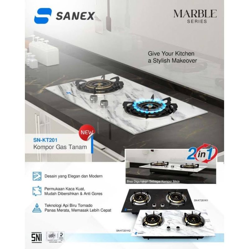 Detail Sanex Kompor Gas Kaca 2 Tungku 2in1 (Tanam/Meja) MARBLE Series