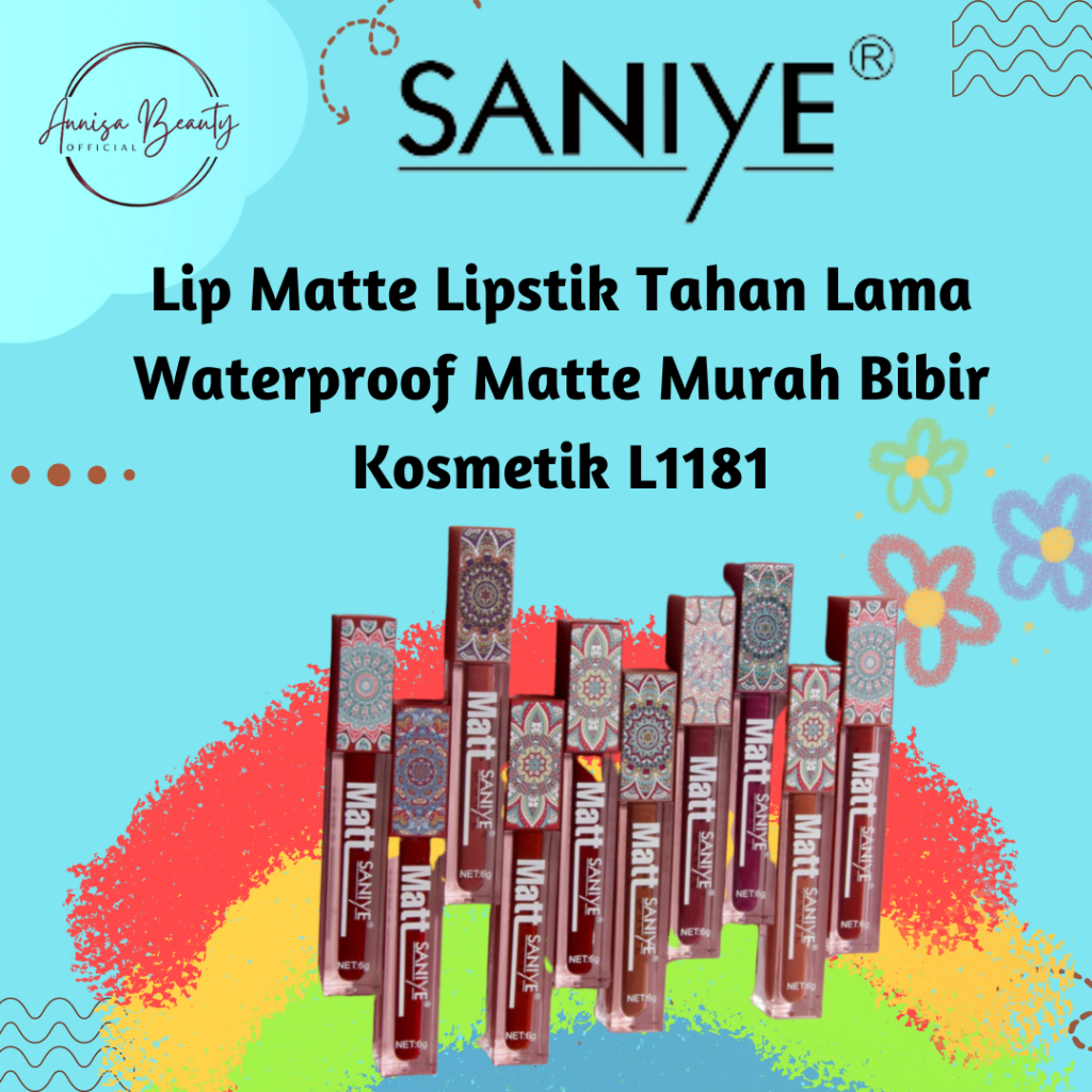 SANIYE Lip Matt memiliki finishing comfort matte, yaitu hasil akhir matte namun tidak terasa lengket dan kering ataupun membuat bibir tampak pecah-pecah. bertektur velvet powdery yang terasa lembut dan ringan. Lip Matt tidak larut daalam air, dengan efek super tahan air sehungga membuatn lipstik ini tahan lama