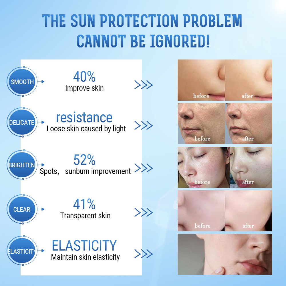 Fitur: 1. Indeks tabir surya setinggi SPF90+++, efektif melindungi UVA dan UVB, ringan & ramah kulit 2. Efek pelembab yang kuat yang terus menerus mengisi kembali air ke kulit, membuat kulit lembab dan tidak kering. 3. Anda dapat menggunakan produk kami di berbagai kesempatan, seperti menari, perjamuan, belanja. 4. Ramah kulit dan tidak mengiritasi 5. Produk ini tahan air dan tahan keringat, tahan lama sepanjang hari. 6. Produk ini juga dapat digunakan sebagai hadiah untuk keluarga dan teman.