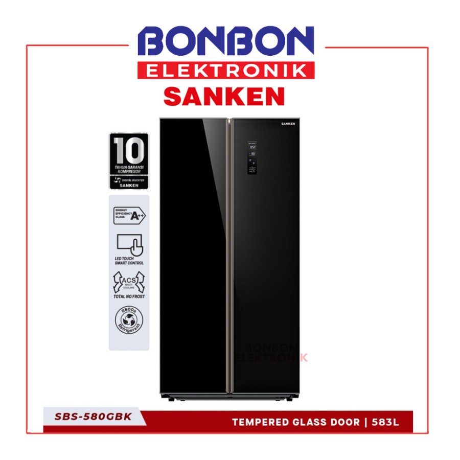 Sanken Kulkas Side By Side 2 Pintu 573L SBS-580GBK Hitam / SBS 580Sanken Kulkas Side By Side 2 Pintu 573L SBS-580GBK Hitam / SBS 580
