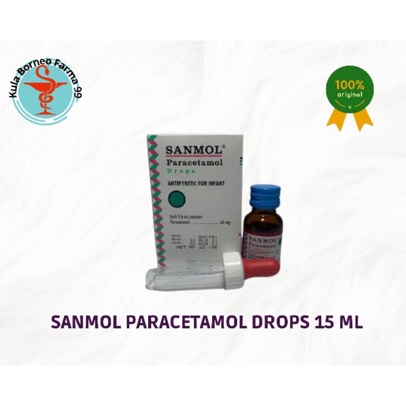 SANMOL DROPS merupakan obat dengan kandungan Paracetamol. Obat ini digunakan untuk meringankan rasa nyeri dan menurunkan demam. Sanmol bekerja pada pusat pengatur suhu di hipotalamus untuk menurunkan suhu tubuh (antipiretik) serta menghambat sintesis prostaglandin sehingga dapat mengurangi nyeri ringan sampai sedang (analgesik). Indikasi Umum: Obat ini digunakan untuk meredakan nyeri termasuk sakit Kepala & sakit Gigi, meredakan Demam yang disebabkan oleh Flu dan pasca Imunisasi Komposisi: Per 0.6 mL : Paracetamol 60 mg Dosis: Dosis anak 1-2 tahun: 0.6 - 1.2 ml, diberikan 3 - 4 kali sehari. Anak kurang dari 1 tahun : 0.6 ml, diberikan 3 - 4 kali sehari. Aturan Pakai: Sesudah makan Kontra Indikasi: Penderita gangguan fungsi hati yang berat. Hipersensitivitas terhadap Paracetamol. Perhatian: Disfungsi hati dan ginjal Efek Samping: Hematological, alergi kulit, reaksi alergi lain dan kerusakan hati untuk penggunaan jangka panjang. Kemasan Dus, Botol @ 15 ml No. Reg: DBL9722221636A1