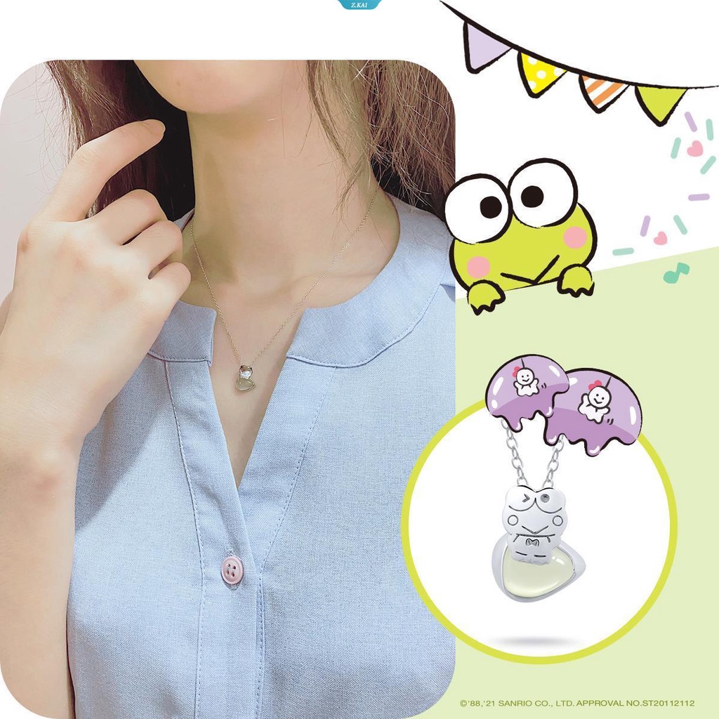 Detail Sanrio Elegan Fashion Fantasyland Keroppi Mata Besar Kodok Daun Batu Permata Liontin in Sterling Silver Perhiasan Pernikahan Kalung [ZK]