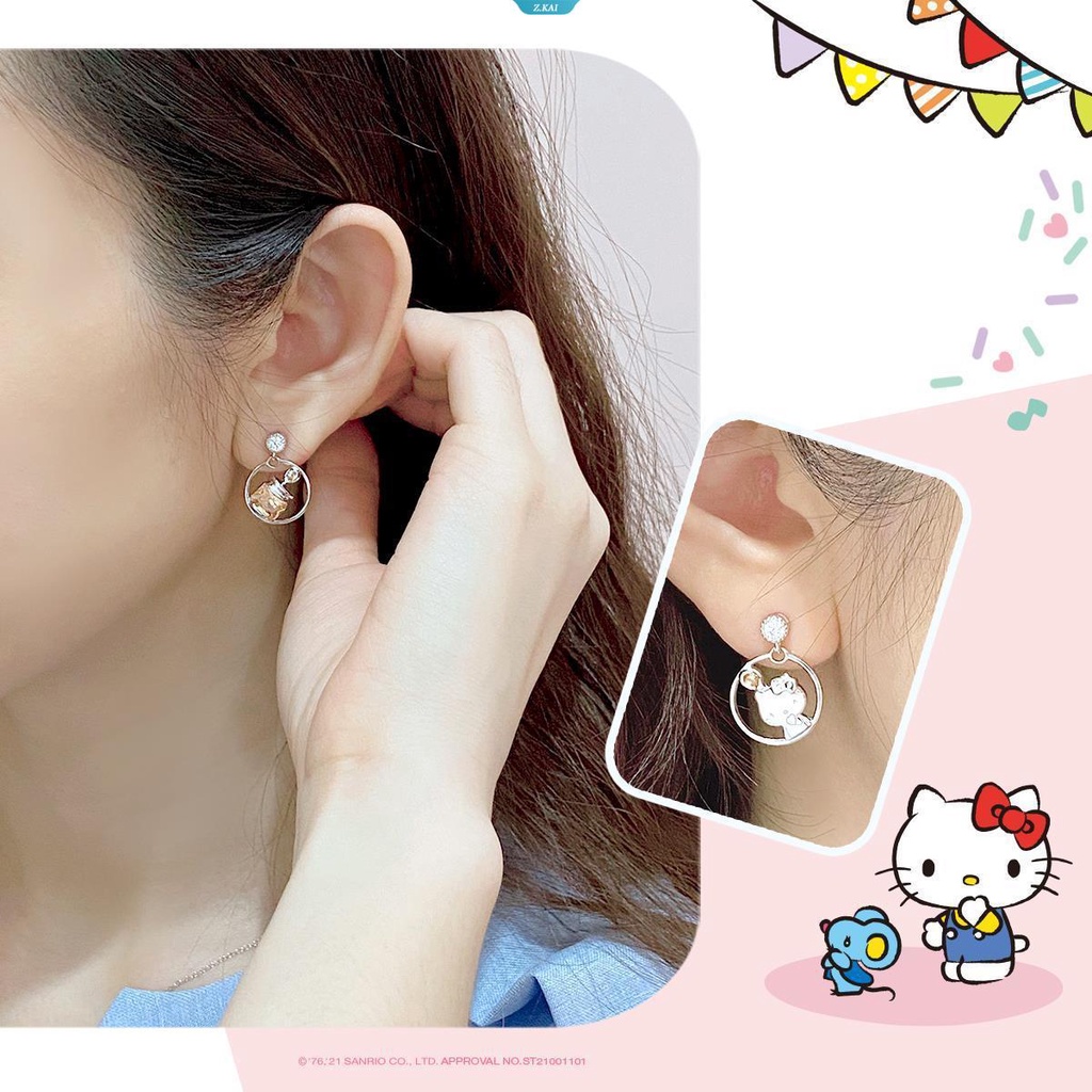 Detail Sanrio Kawaii Fantasy Paradise Hello Kitty Jam Kristal925Perak Anting Stud Earrings Kwaii Perhiasan Hadiah Ulang Tahun Gadis Anting [ZK]