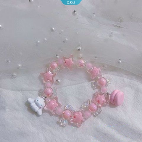 Sanrio Pink dan Biru Cinnamoroll Buatan Tangan Lolita Gadis Permen Gelang Pelangi Bintang Lolita Manik-manik Gelang Lolita Gaya Korea Pakaian Tangan Perhiasan [ZK]