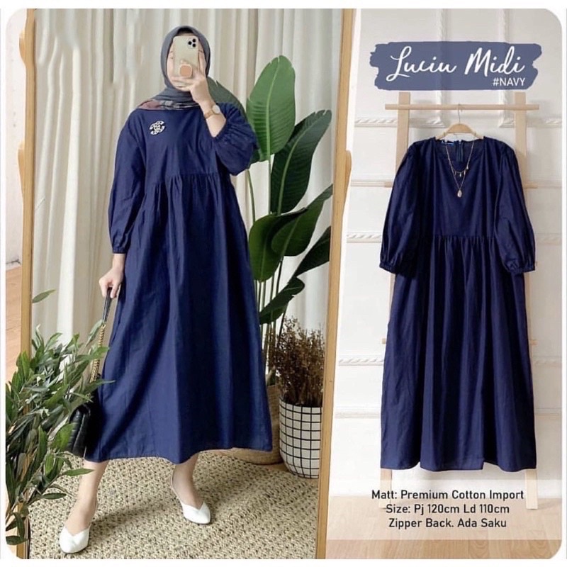 Detail Sanso Midi Polos / Luciu Midi Dress Wanita Muslim Lengan Balon