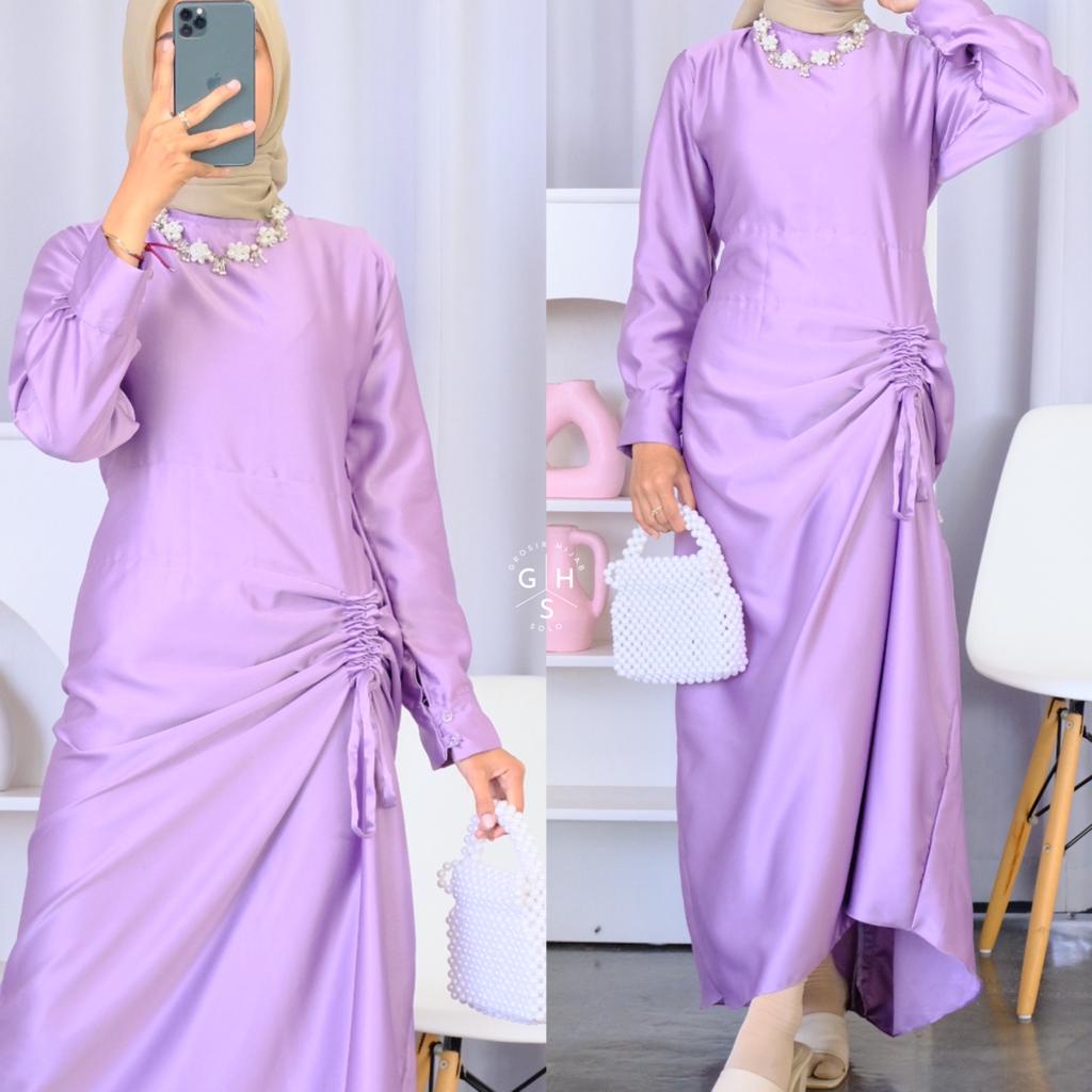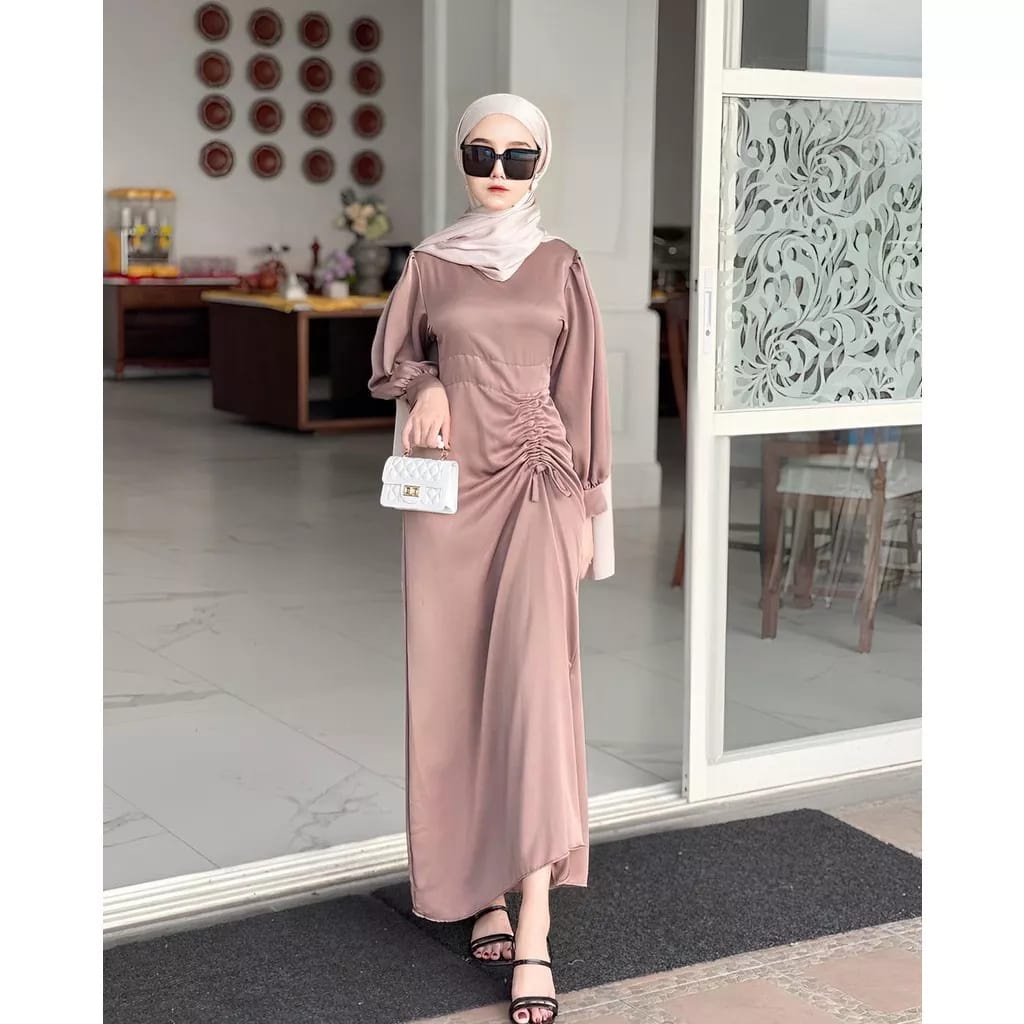 ๐๐๐๐๐๐๐ ๐๐๐๐๐ : ๐ gamis satin variasi tali serut elegan sesuai di variasi foto pergelangan tangan kancing, resleting belakang