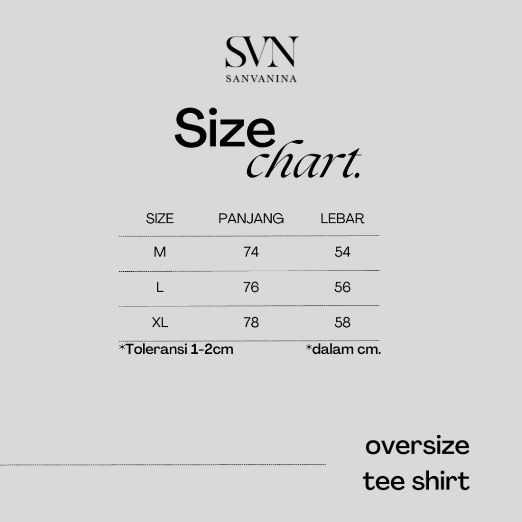Cooper Oversized T-Shirt - @sanvanina . Oversize T-Shirt dengan bahan katun combed 24s yang lembut, pastinya akan menyegarkan hari harimu dengan tampil lebih percaya diri dan penuh semangat. . Keunggulan: • Bisa digunakan oleh pria maupun wanita, cocok dipadukan dengan bawahan celana panjang maupun pendek. • Sangat nyaman digunakan dalam kegiatan sehari-hari • Cuttingan Oversize • Menggunakan Bahan Premium Cotton Combed 24s • Kalian wajib punya ya, segera diorder karena harga sedang promo. . Detail ukuran : M : Lebar Dada 54 cm - Panjang 74 cm L : Lebar Dada 56 cm - Panjang 76 cm XL : Lebar Dada 58 cm - Panjang 78 cm *Toleransi : 1-2cm