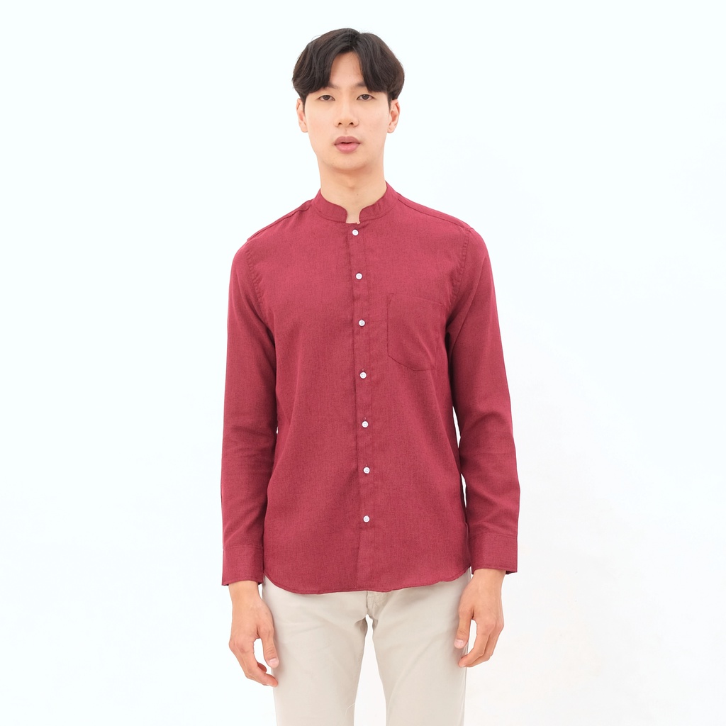 Detail SANVANINA Kemeja Pria Polos Lengan Panjang Kerah Shanghai Khaby Maroon E-5100J