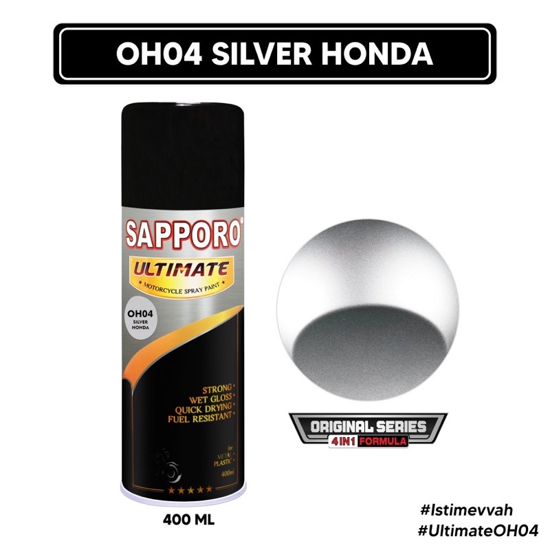 Sapporo Ultimate OH04 Silver Honda 95% sama dengan warna Silver Honda Original Isi kemasan : 400ml Hasil Akhir : Doff