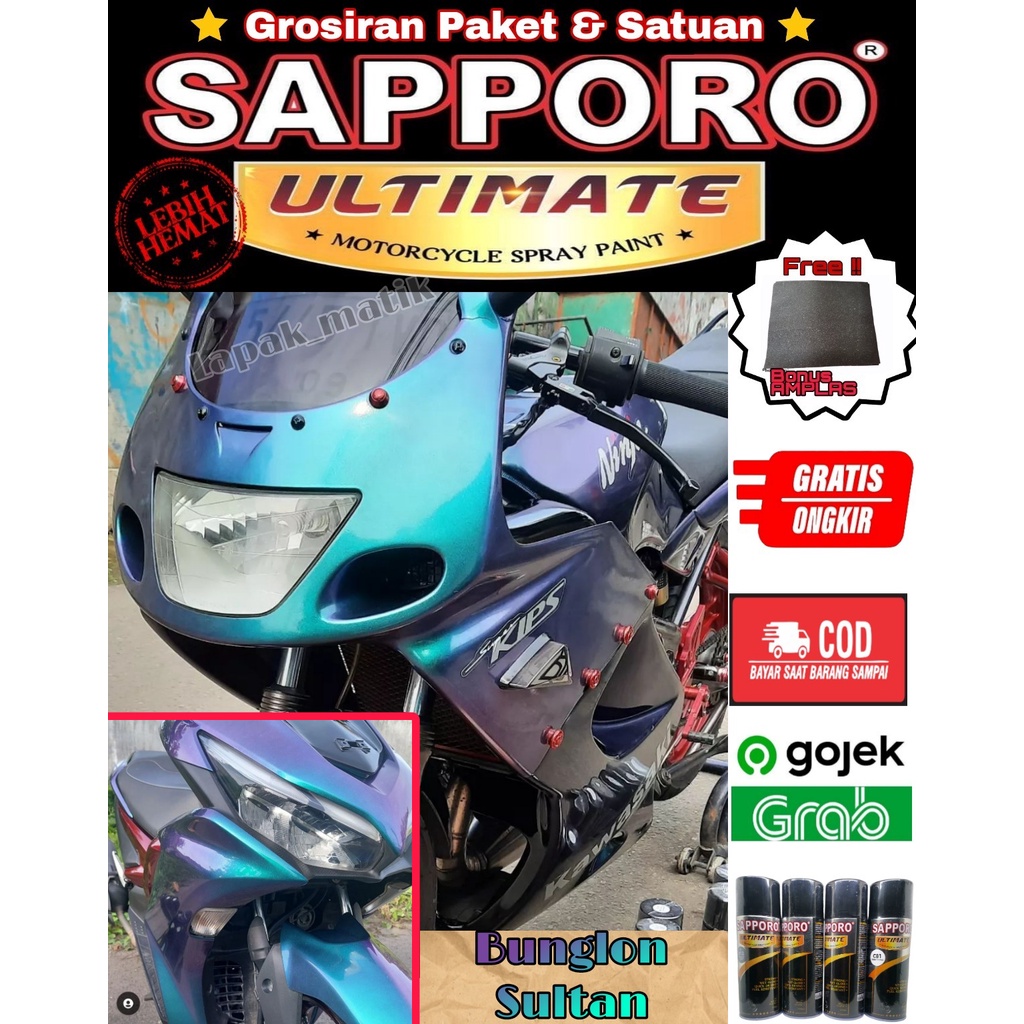 NOTE : PENGIRIMAN LUAR PULAU DAPAT DILAKUKAN, DENGAN UBAH PENGIRIMAN DARI "REGULER" KE "HEMAT" ============================================================================================ Keunggulan beli di toko kami : 1. Barang 100% original 2. Mendapatkan bonus amplas* 3. Barang yang dikirim akan selalu yang terbaru, karena perputaran di kita cepat. 4. Pengiriman cepat , orderan sebelum jam 3 sore, akan dikirim hari itu juga (kcuali minggu) 5. Harga Grosir dan Terbaik 6. Bisa konsultasi kepada kita tentang warna yang diinginkan serta solusi permasalahan tentang pengecatan 7. Free ongkir 8. Bisa COD =========================================================================================== SAPPORO ULTIMATE XT03 BUNGLON SULTAN ISI : 400ML WARNA : BUNGLON (seperti aurora dan mirip snake venom) WARNA DASAR : B13 Black =========================================================================================== Urutan pengecatan : 1.untuk hasil biasa = B13 BLACK+ XT03 BUNGLON SULTAN 2.untuk hasil maksimal =EPOXY PRIMER GREY B12 + B13 BLACK+ XT03 BUNGLON SULTAN + CLEAR GLOSS C81 ============================================================================================== *untuk CAT DASAR EPOXY, kita juga menyediakan ukuran 300 ml PRIMER GREY 768 *untuk BONUS AMPLAS, berlaku untuk pembelian minimal 2 kaleng.