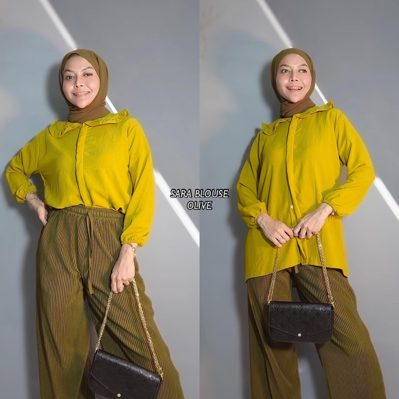 SARA BLOUSE Detail Size : ✂️Lingkar Dada : 110 cm ✂️Lingkar Ketiak : 46 cm ✂️Panjang Tangan : 50 cm ✂️Panjang Baju : 70 cm ada detail karet di di bagian tangan